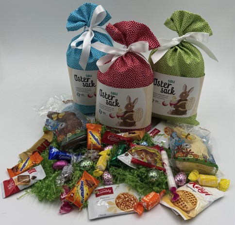 Bereiten Sie Ihrer Familie, Ihrem Freundeskreis oder Ihren Geschäftspartnern eine besondere Freude mit einem einzigartigen Ostersack der SBU. Der Ostersack ist mit einer Auswahl hochwertiger Süsswaren sowie zwei feinen Schokoladenhasen befüllt. Das farbenfrohe Stoffsäckli wird aus schadstofffreiem, nach Oeko-Tex Standard 100 zertifiziertem Baumwollstoff gefertigt und eignet sich hervorragend für eine nachhaltige, mehrfache Nutzung.