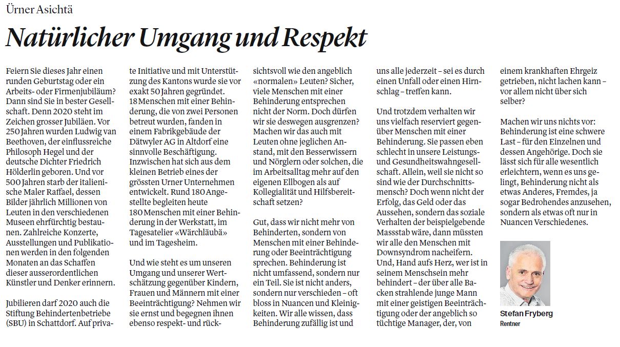 Stefan Fryberg legt in seiner Kolumne dar, dass Menschen mit und ohne Behinderung gar nicht so verschieden sind und er erläutert, was dies für das gegenseitige Begegnen impliziert
